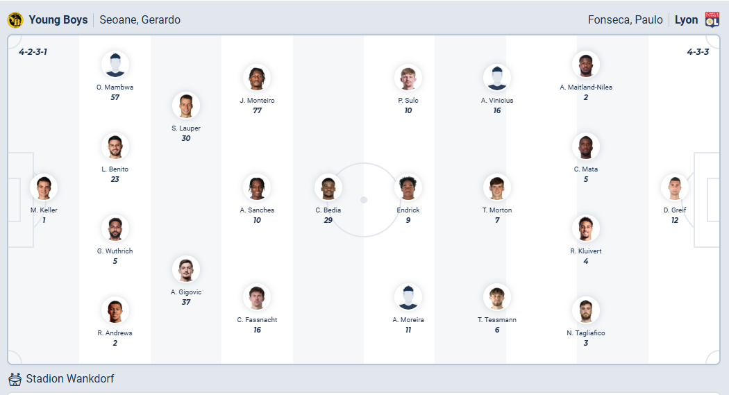 Young Boys là đội bóng mạnh của Thụy Sỹ, họ đứng thứ 3 tại giải vô địch quốc gia này mùa trước. Mùa giải năm nay mọi thứ đang diễn ra không như thầy trò HLV Gerardo Seoane mong muốn, họ thua cả 5 trận gần nhất trên mọi đấu trường và đã tụt xuống thứ 6 tại đấu trường quốc nội. Ở Europa League các cầu thủ Young Boys đang đứng thứ 21 và vẫn có nguy cơ bị loại nên phải giành thêm điểm số ở 2 trận còn lại của League Phase, tuy nhiên trận đấu với một Lyon đang có phong độ cao được đánh giá vô cùng khó khăn, nhiều khả năng đội bóng Thụy Sỹ sẽ không thể có điểm trận này.